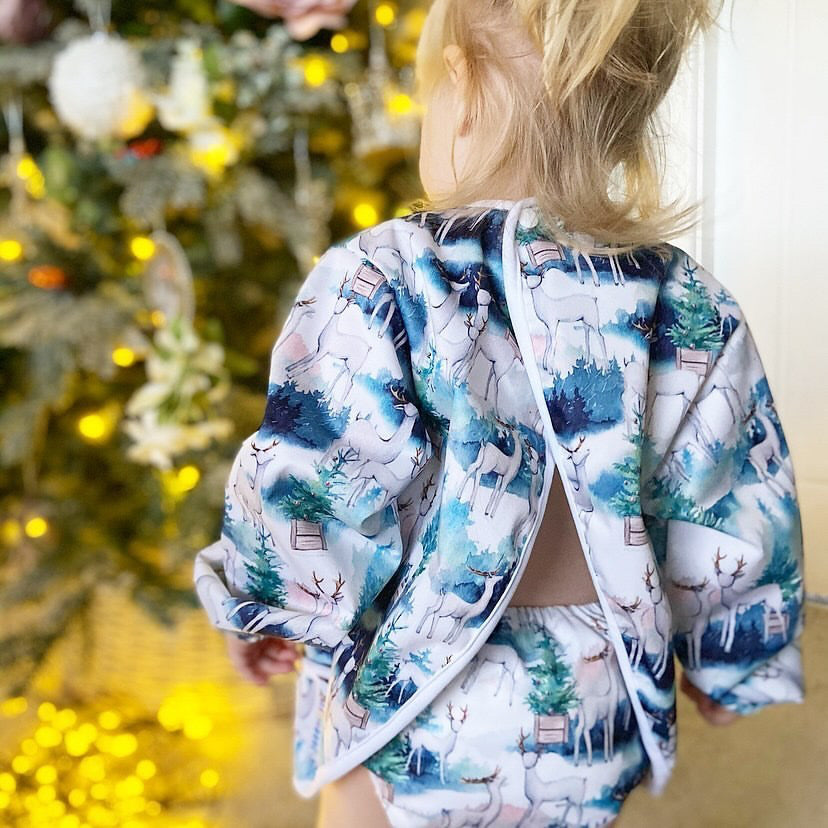 Our award winning bibs and smocks match our range of gorgeous reusable cloth nappies. Each piece is designed to give perfect coverage, water resistance to protect clothing and is easy to clean. Our prints are hand drawn and painted by local artists, making each piece literally a work of art! For the ultimate easy meal time be sure to add some cloth wipes for cleaning hands and faces - just add water!