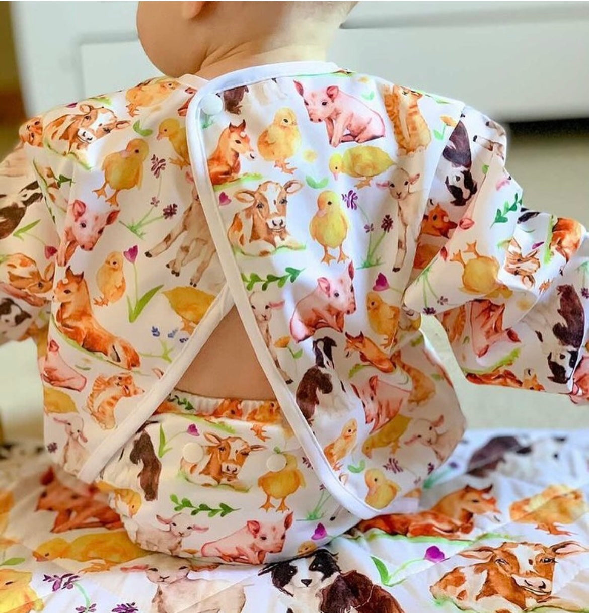 This is my third time weaning and I wish I had found these weaning smocks the first time around. Not only are the prints vibrant and gorgeous but they're splash proof and keep my baby dry and clean at mealtimes, especially dinner. IYKYK. We've started off with two but will likely be buying more! Customer service great as well. I had a minor issue with sizing (my baby's a chunk) and Tricia was able to help me sort it out easily.
