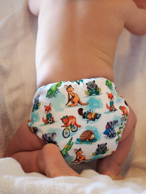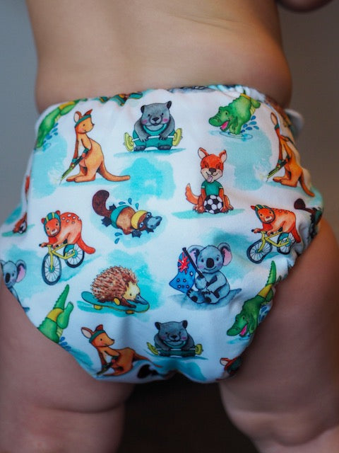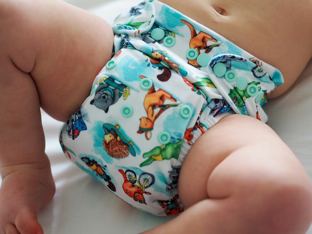 Our signature and most popular style, this All in Two (AI2) cloth nappy is trim fitting, super absorbent and stylish. Your little one will be comfortable with stretchy soft elastics and premium fabrics including our exclusive hand painted artwork printed onto our PUL.