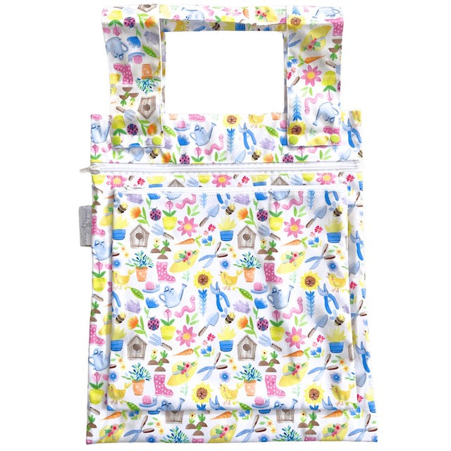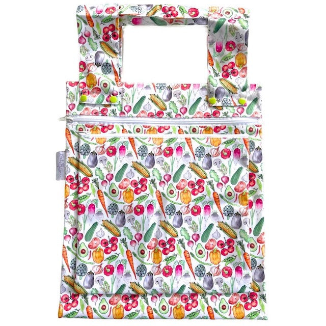 I was drawn to this bag because of the colours. It just makes me smile because it is so beautiful and It is so well made. It is great for dirty nappies, clothes, or wet swimming costumes.