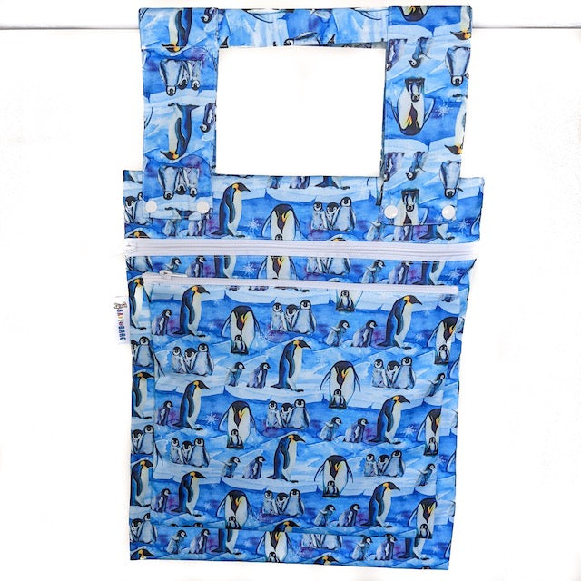 Double wet bag featuring polar bears on a blue background with snowflakes
