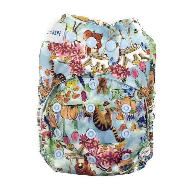Our signature and most popular style, this All in Two (AI2) cloth nappy is trim fitting, super absorbent and stylish. Your little one will be comfortable with stretchy soft elastics and premium fabrics including our exclusive hand painted artwork printed onto our PUL.